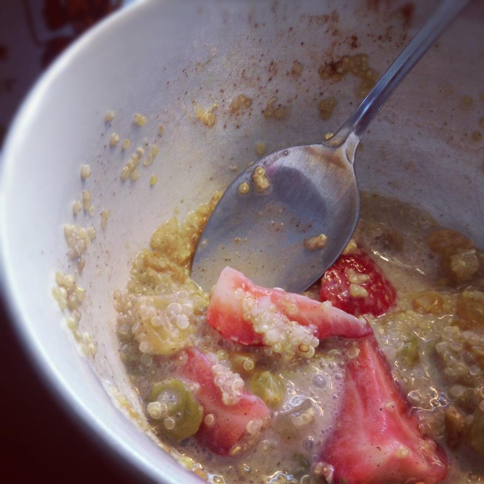 While the potatoes are baking, prepare the duck breast. In a large skillet, brown the breast 4-5 minutes on each side or until medium-rare (or longer, as you prefer). Note that over-cooked game gets a “gamey” taste and is a common mistake in cooking game. Slice the duck breast to serve.