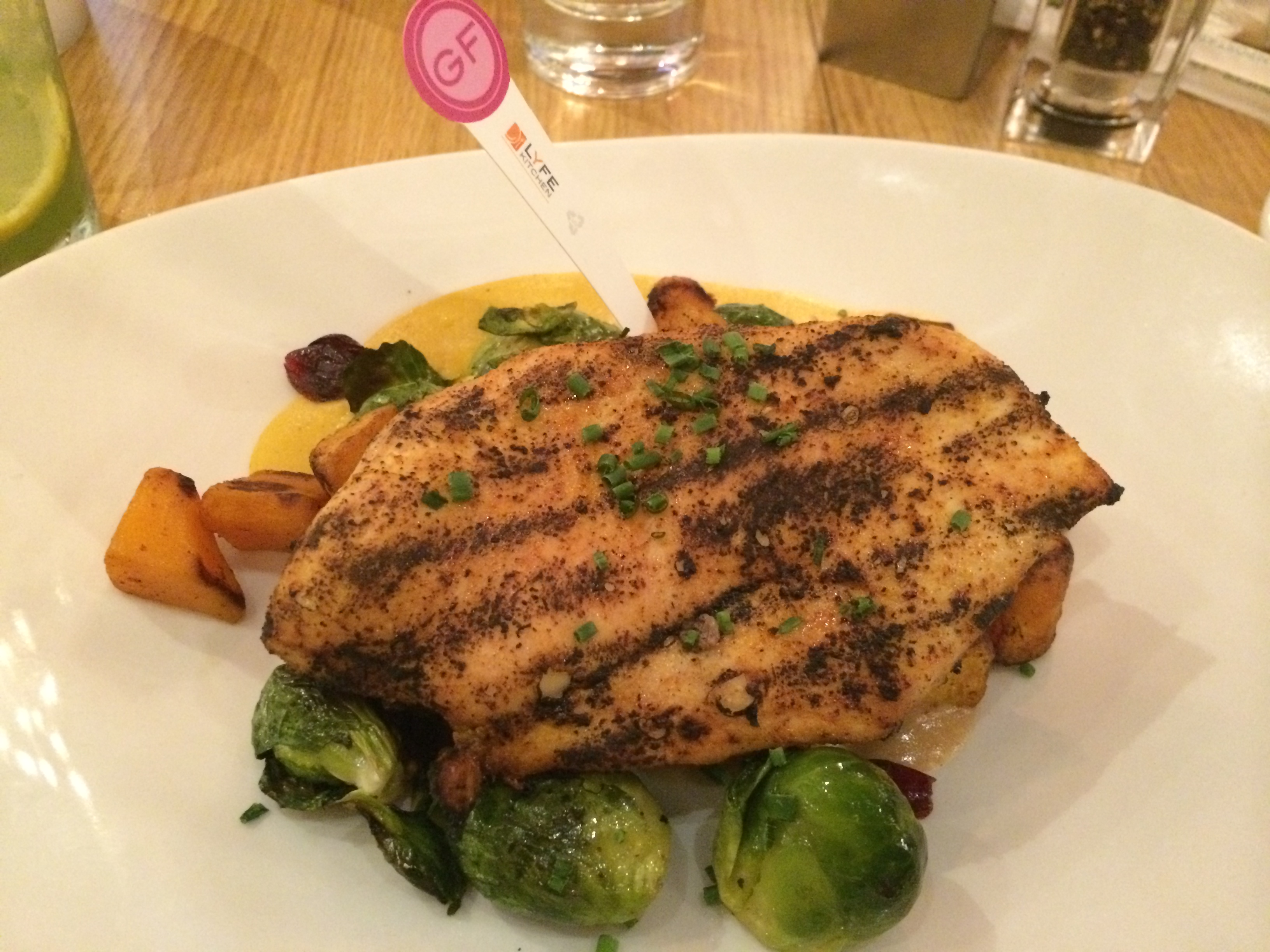 (Beverly Hills): I stuck with the grilled peach spinach salad with grilled chicken… but CPK has upped the ante with their gluten free offerings. They received a lot of criticism for contamination issues when they first issued gluten-free pizza options. Now they have teamed up with the Gluten Intolerance Group to guarantee better efforts at avoiding cross-contamination. I was game to try it out but the crust has rice flour (I’m allergic) so I skipped it. Anyone out there tried their pizza recently?